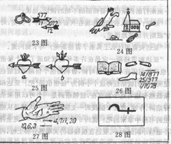 班斯不予置答,逕自翻開羅士博士「犯罪大全」第二卷指給我們看。右頁有幾處畫著一奇妙線條的地方,現在我將之如實描繪下來,如下圖。