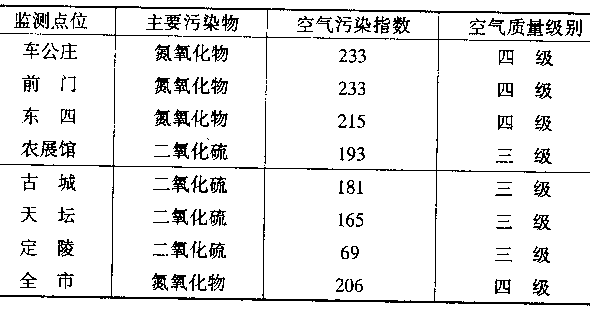 ¡@¡@¬°¤FºÊ´ú¥_¨Ê¥«°ÏªºªÅ®ð½è¶q¡A¥_¨Ê¥«¬F©²¨M©w¡A±q1998¦~2¤ë28¤é°_¡A³q¹L·s»D´CÅé¦VªÀ·|¤½§G¥«°ÏªÅ®ð½è¶q¶g³ø¡C¸g°ê®a»{©w¡A¥_¨Ê¥«ªÅ®ð½è¶q¦Û°ÊºÊ´ú¨t²Î³]¸m¤F8ӺʴúÂI¦ì¡A¶g³ø±N¤À§O«Å§G8ÓÂIªºªÅ®ð¦Ã¬V«ü¼Æ¡]¤À¬°Àu¡B¨}¡B»´«×¦Ã¬V¡B¤¤«×¦Ã¬V¡B««×¦Ã¬V¤¯Å¡^¡A¨Ã¹ï¥_¨Ê¥«ªÅ®ð½è¶qª¬ªp¶i¦æÁ`Åé¤ÀªR¡C¾Ú1998¦~2¤ë20¤é¦Ü26¤éªººÊ´úµ²ªG¡A¥_¨Ê¥«ªÅ®ð¦Ã¬V«ü¼Æ¬°206¡AªÅ®ð½è¶qÄݤ¤«×¦Ã¬V¡C8ÓÂI¦ìªºªÅ®ð¦Ã¬V«ü¼Æ¨£¤Uªí¡C
