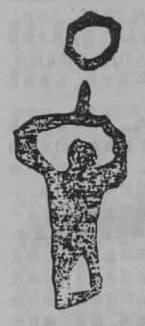 這個跪著的人形,他禮拜的對象是什麼呢?我們認為,它就是上面提到的「天」,是一顆懸浮在我們頭頂上的巨大星球。因此,這幅巖畫是地地道道的「天崇拜」的圖形表示。