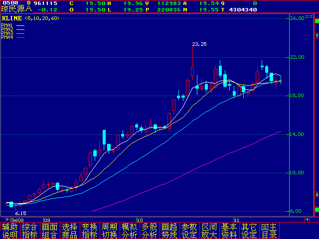 拔高吸貨的手法:迅速拉抬股價甚至其成交密集區,這時解套盤就會紛紛「出籠」,但此時的獲利盤往往還貪得不厭,不肯兌現。作為主力,如何把他震出來呢?可以讓股價放量橫盤,當此時大盤屢創新高時,該股往往沒有反應,並不創新高,造成「虎頭蛇尾」之狀(這是一種反技術),此時的活力盤就會因吃不準而急於結帳。這樣主力在「解套盤」和「獲利盤」的雙重打壓下,吸到了大量籌碼。這種方法有時候用在大盤漲勢中,例如:「95.3.27」「外高橋」的拔高吸貨(「領漲股隱現,一輪升勢呼之欲出」是筆者在「95.3.27」在上證報的一篇文章,與主力的實戰不謀而合。「外高橋」一周內上漲了10元);也用在大盤大跌勢中,例如:「96.9.18」的「瓊民源」及「96.7.12」「廣東梅雁」。