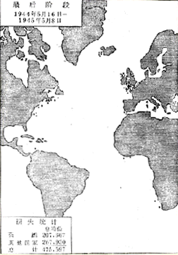 大西洋戰役:最後階段商船被德國潛艇擊沉情況。