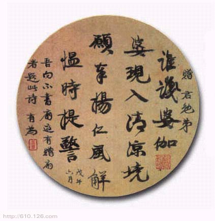 從中可以看出康有為的運筆毫無帖法,全從碑出,逆筆藏鋒,遲送澀進。轉折之處常常提筆暗過,圓渾蒼厚。結體也不似晉、唐的欹側綺麗,而是橫平豎直,長撇大捺,氣勢開展,饒有漢人筆意。