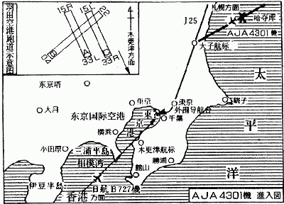 與此同時,由香港返回的日本航空公司波音727客機,以儀器飛行方式徑直從木更津上空朝羽田空港飛來。